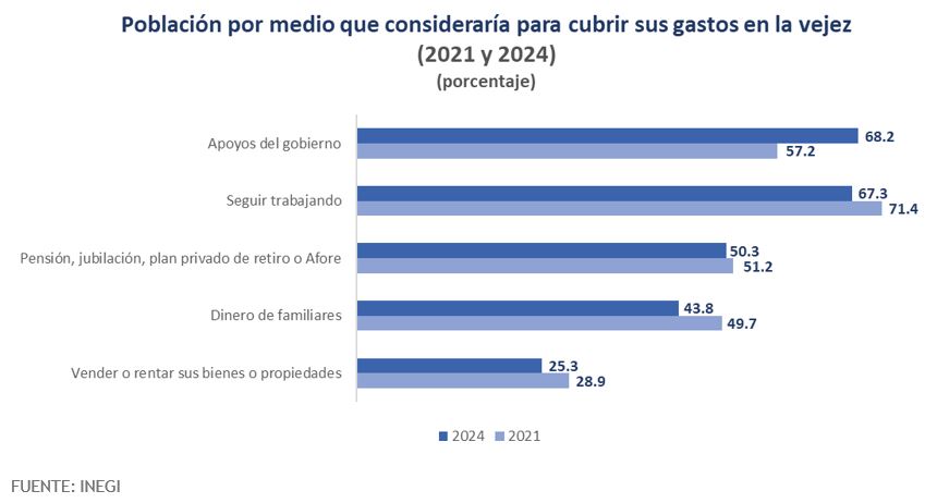 De acuerdo con la última Encuesta Nacional de Inclusión Financiera (ENIF) en 2024,que elabora el Instituto Nacional de Estadística y Geografía (INEGI) en colaboración con la Comisión Nacional Bancaria y de Valores (CNBV), un porcentaje importante de la población de 18 a 70 años aún consideraría como medios para cubrir gastos de su retiro los apoyos del gobierno, el dinero de familiar eso incluso el seguir trabajando, lo cual refleja un importante grado de dependencia a fuentes externas para subsistir durante el retiro. Fuentes que podrían no ser suficientes o impedirían disfrutar de un retiro cómodamente.